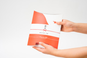 musubi STAND ※こちらの【熨斗[感謝]付きタイプ】は「社名」「氏名」を印字できる商品です。ご購入ステップ「発送・支払方法」部分の【印字欄】に、印字希望の文字をご記入ください。 商品の特徴 いろいろな開け方があります https://kamioshibori.com/wp-content/uploads/2021/02/musubi_movie_05.mp4 ご挨拶用の粗品としてご利用いただけます 箱外側のスリットにご自身のお名刺を差し込めます musubiのご利用説明書付き(1箱につき1枚同封) musubi STAND 50箱セット(1箱10本入り) 在庫状態 : 在庫あり 販売価格 ¥24,200(税込) 数量 ※熨斗なし musubi STAND(熨斗[感謝]付き) 50箱セット(1箱10本入り) 在庫状態 : 在庫あり 販売価格 ¥24,200(税込) 数量 ※本商品は「社名」「氏名」を印字できる商品です。ご購入ステップ「発送・支払方法」部分の【印字欄】に、印字希望の文字をご記入ください。