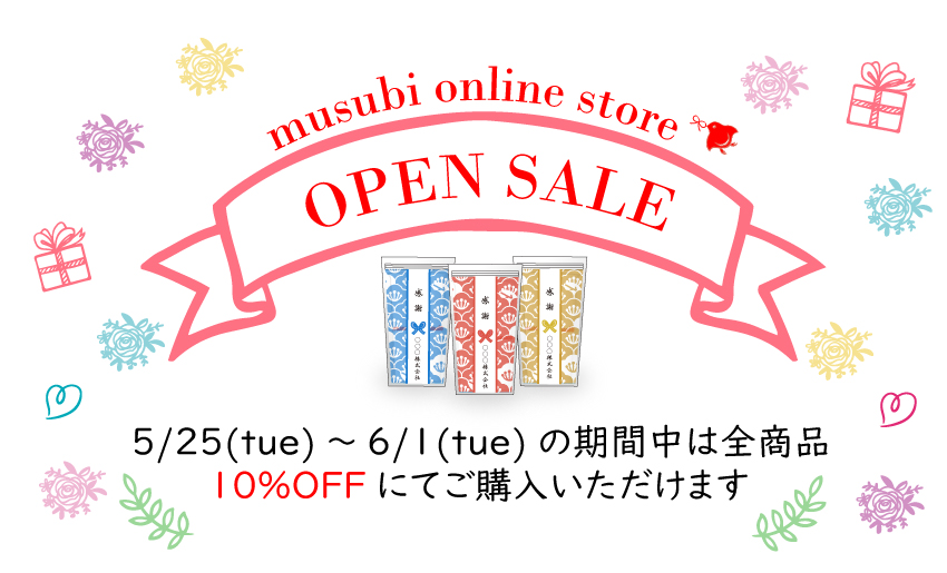 musubiのインターネット販売開始を記念して、全品10%OFFキャンペーンを開催いたします。